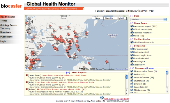 The BioCaster map and ontology are freely available via a web portal at http://www.biocaster.org (live update until 2012).
